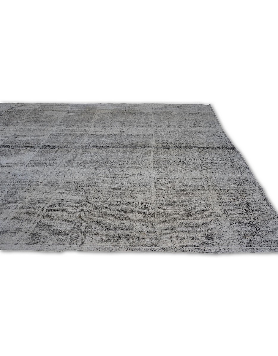 A beautiful vintage kilim is handwoven by Master Artisans using handspun goat hair in Turkey. Kilims are flat woven rugs in a technique that comes from Anatolia, parts of Iran, the Caucasus, and Turkestan. This Mazandaran style minimalist kilim offers simple designs in natural colors.