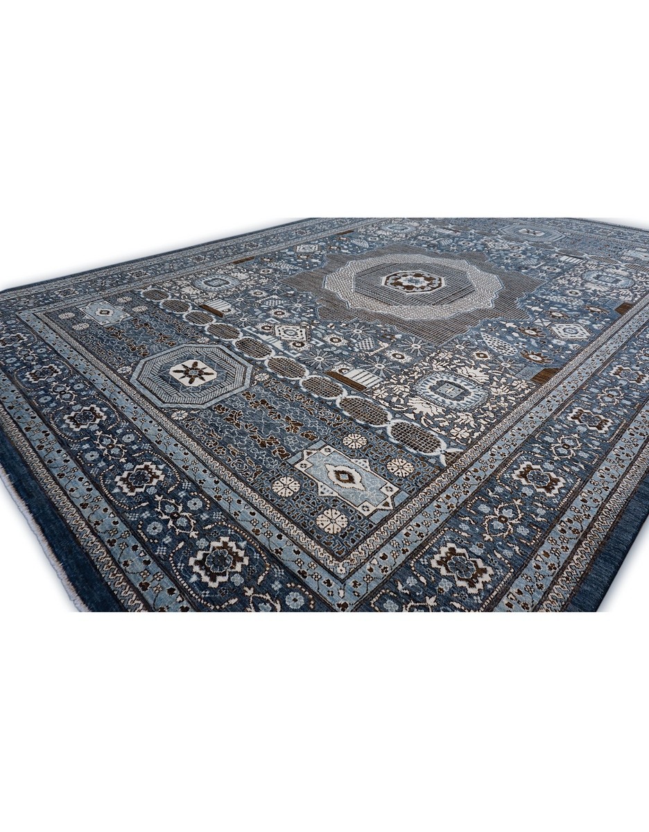 A beautiful Persian Mamluk design using handspun high altitude wool dyed in subtle colors. Hand Knotted by master weavers of Afghanistan & painstakingly finishing process done by Pakistani Artisans makes this rug a masterpiece & takes us back to the late 19th-century era.