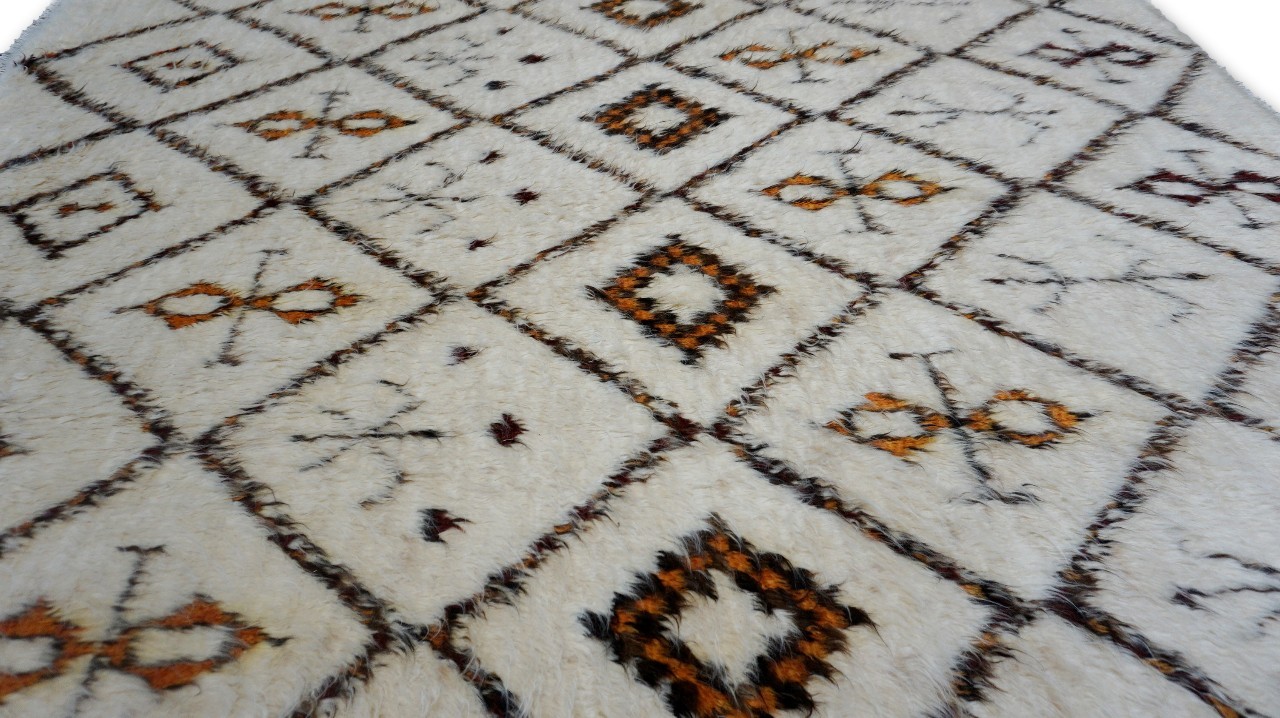 A beautiful modern design using handspun high altitude wool dyed in subtle colors & hand knotted by master weavers & painstakingly finishing process done by Artisans makes this rug a modern masterpiece.
