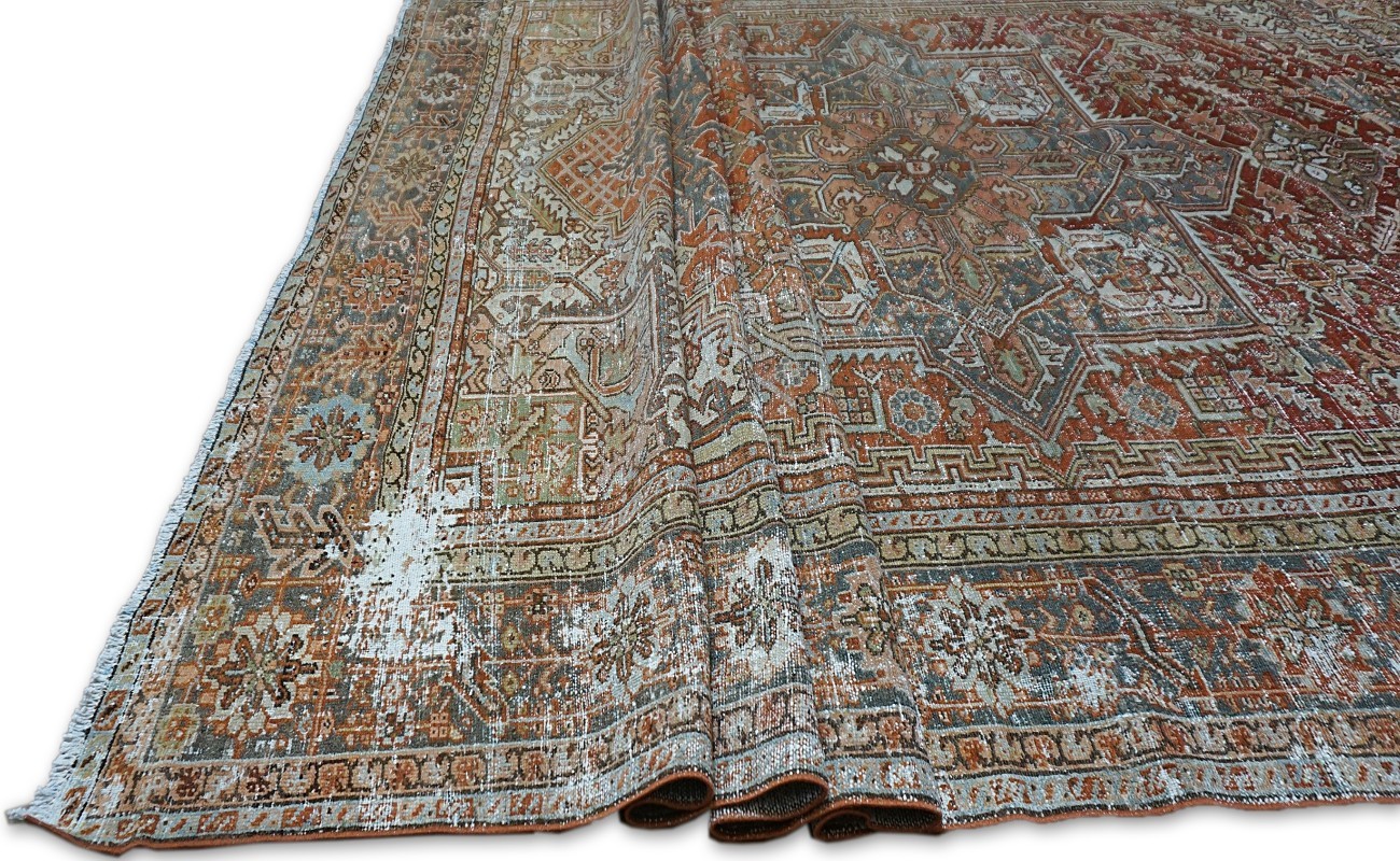 An exquisite antique Persian Heriz. Weathered and distressed extremely decorative and highly sort after master piece
