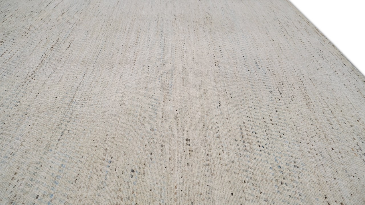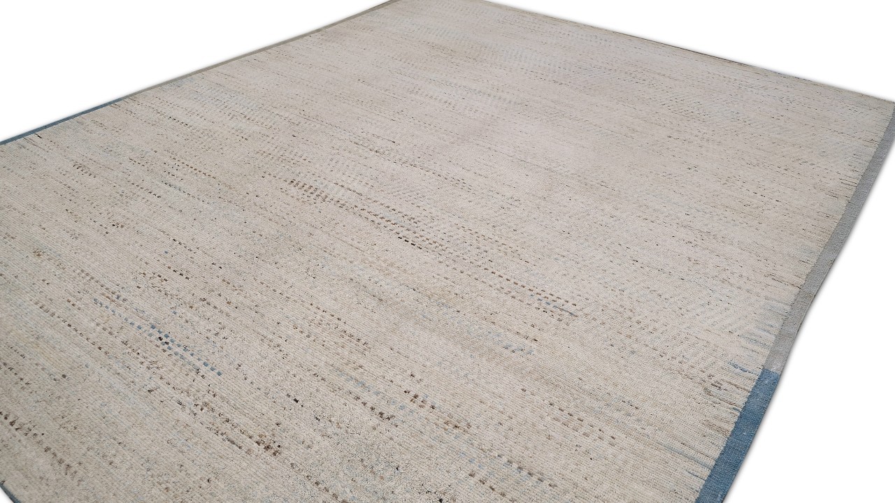 A beautiful modern design using handspun high altitude wool dyed in subtle colors & hand knotted by master weavers & painstakingly finishing process done by Artisans makes this rug a modern masterpiece.