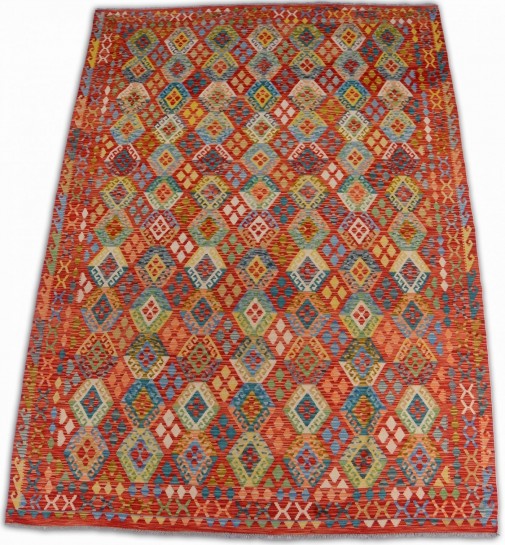 Hand Woven colorful Kilims uses vegitable dyes and handspun wool. Morrocan style pattern makes them a great option when you need a little character.