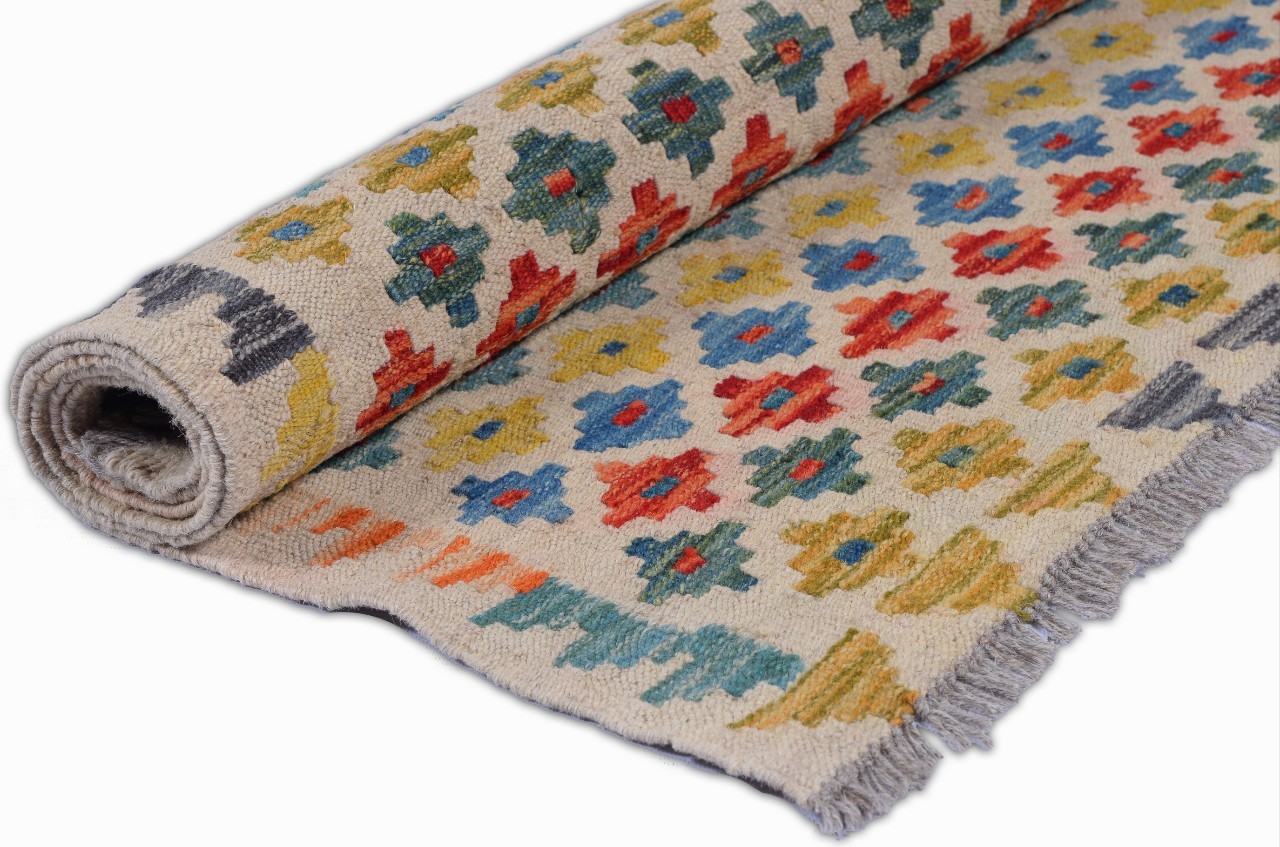 Hand Woven colorful Kilims uses vegitable dyes and handspun wool. Morrocan style pattern makes them a great option when you need a little character.