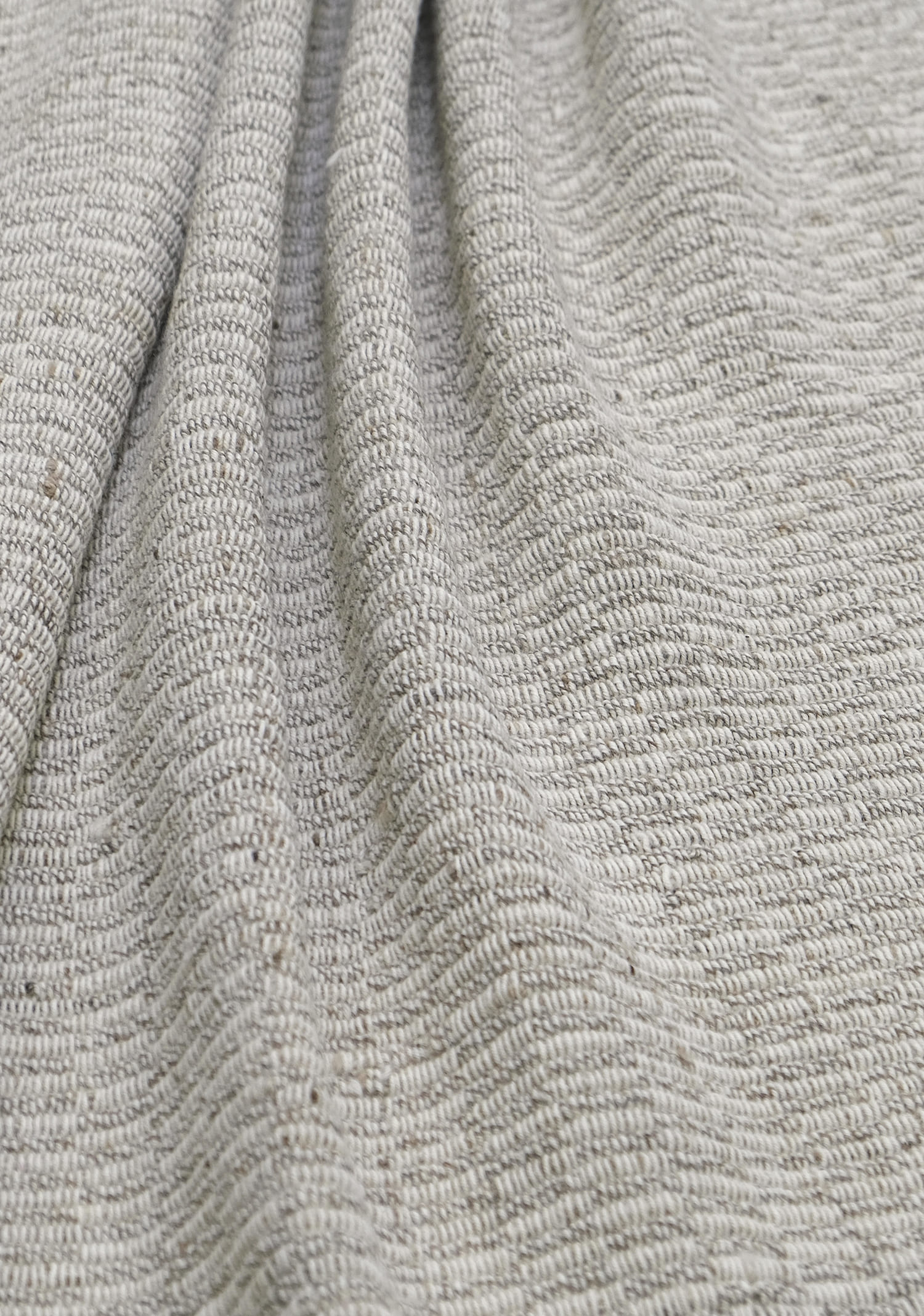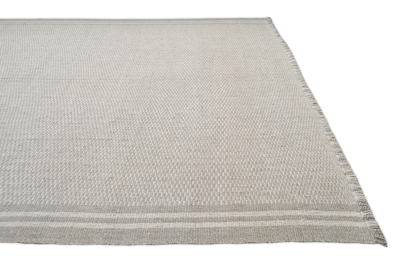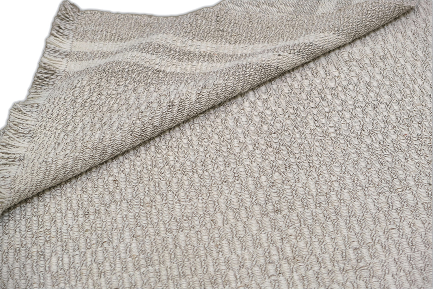 Handwoven with hand-spun wool, this textured flat pile rug features a soothing blend of ivory, beige, taupe & light brown tones. The blend of these shades gives this rug a natural, organic look, making it versatile for modern, minimalist, or rustic interiors