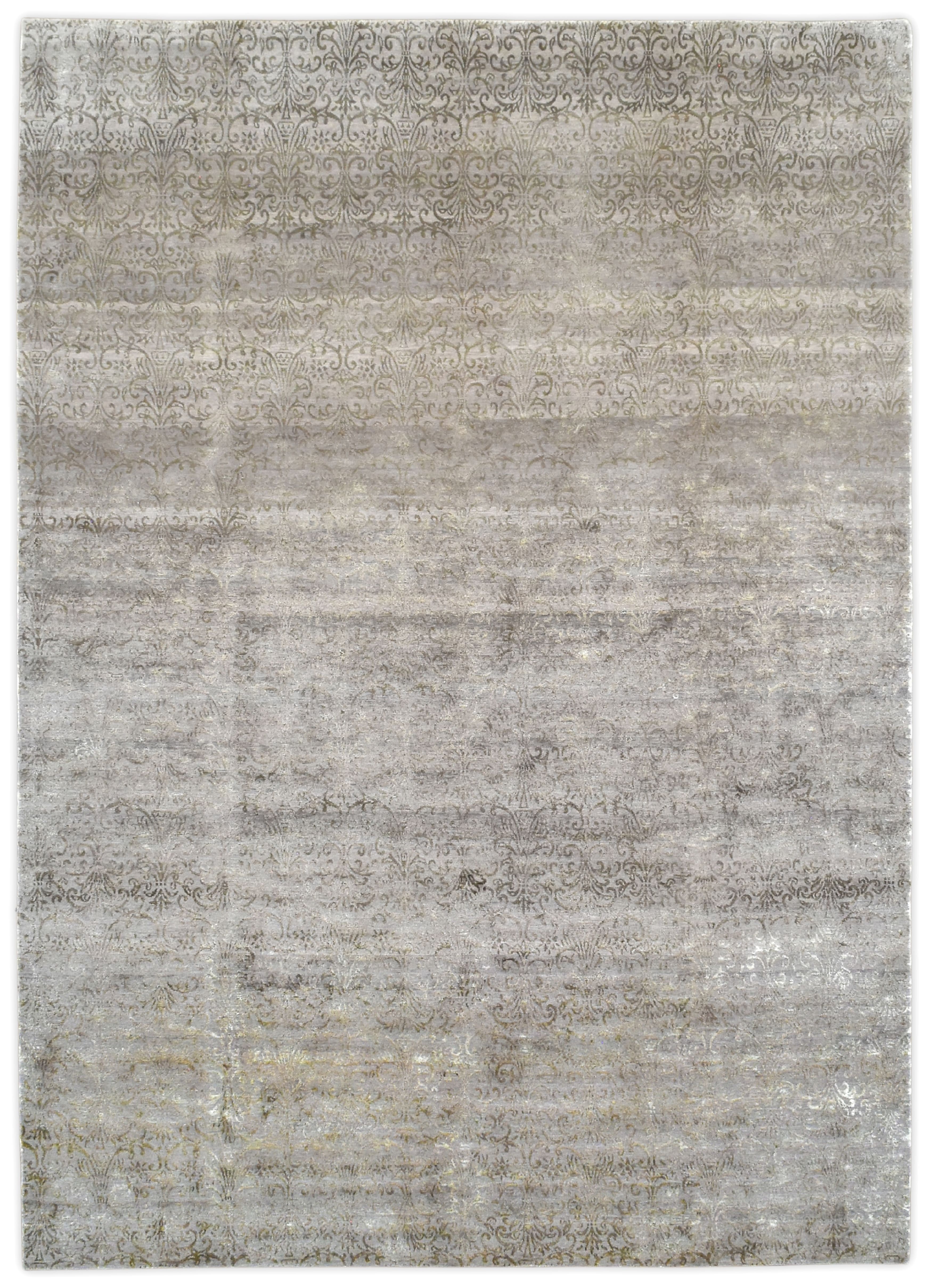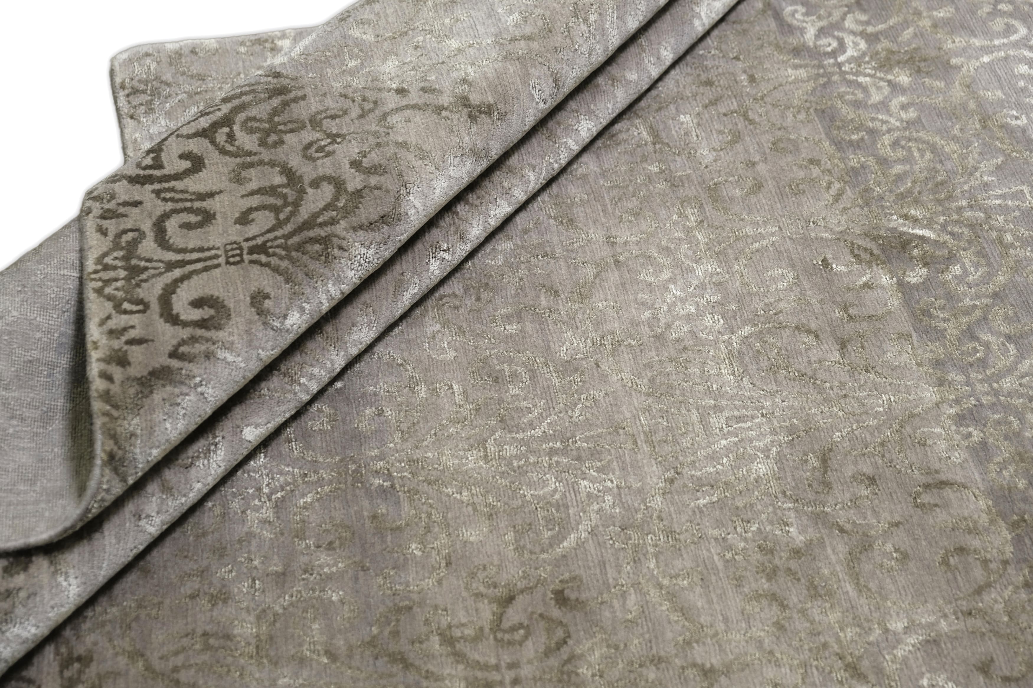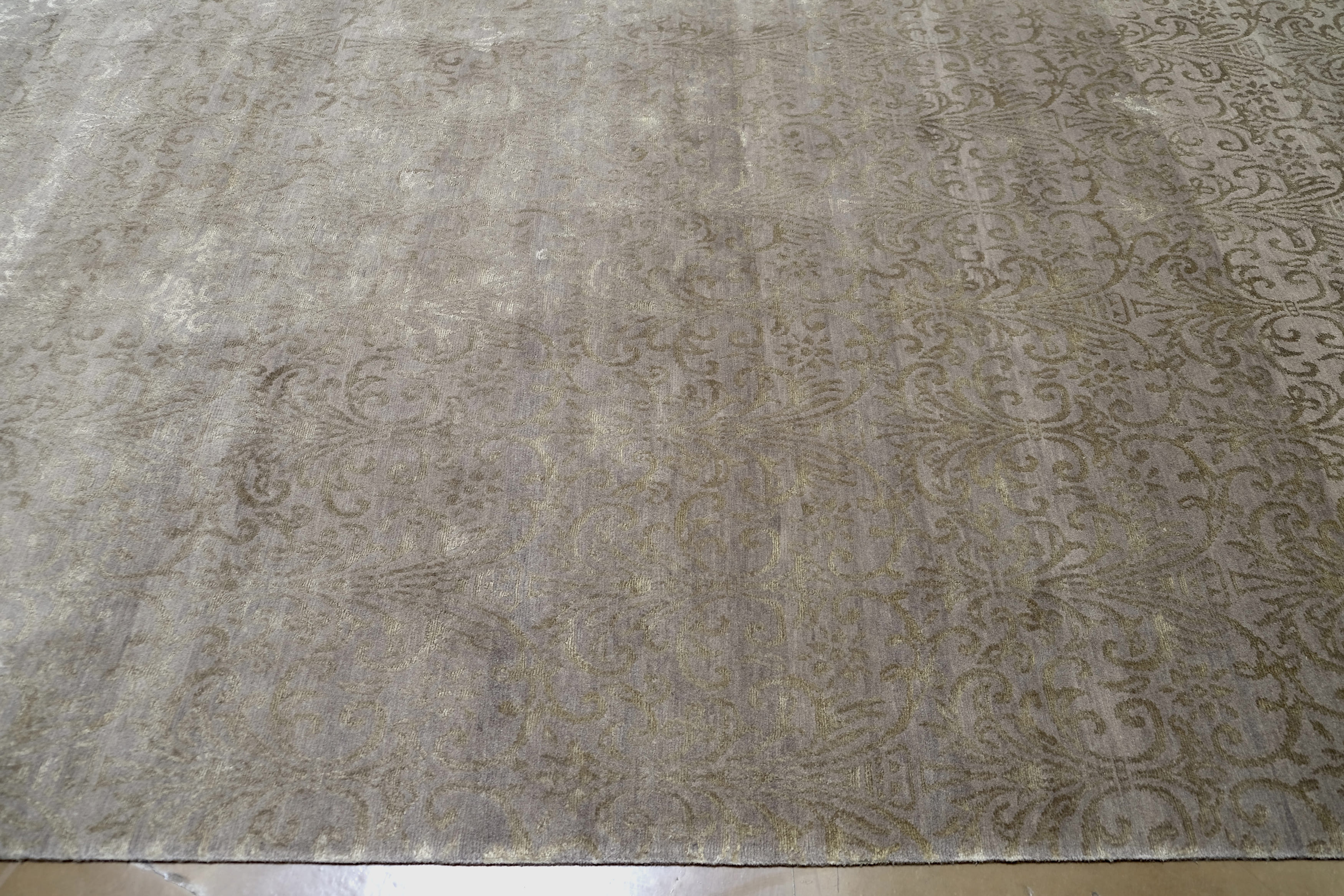 Hand-knotted with a lustrous wool-and-silk pile, featuring light brownish Taupe-mauve background of different shades & an elegant scrolling motif in muted olive-gold create a sophisticated, tonal palette with a refined sheen and a luxuriously soft hand.