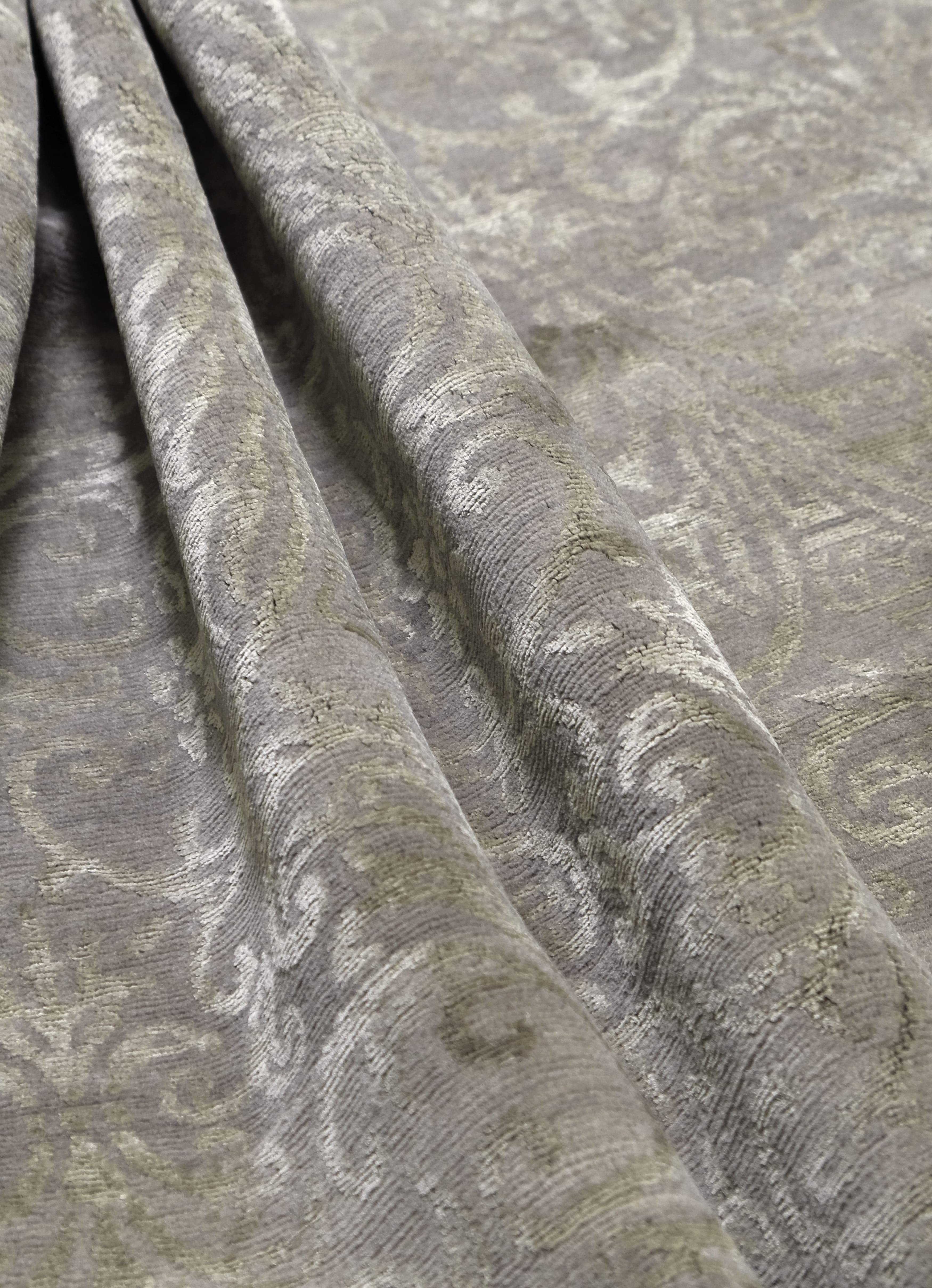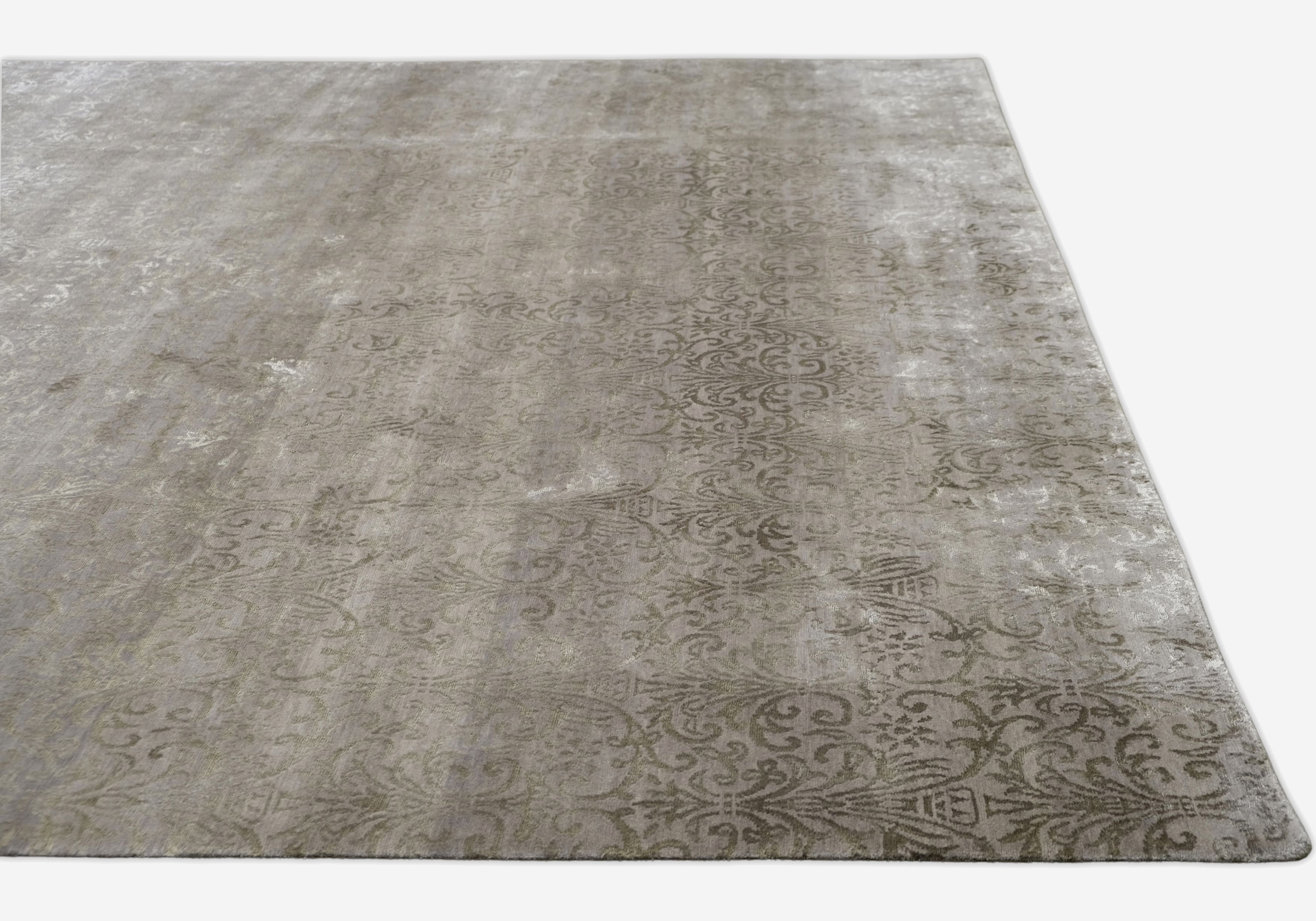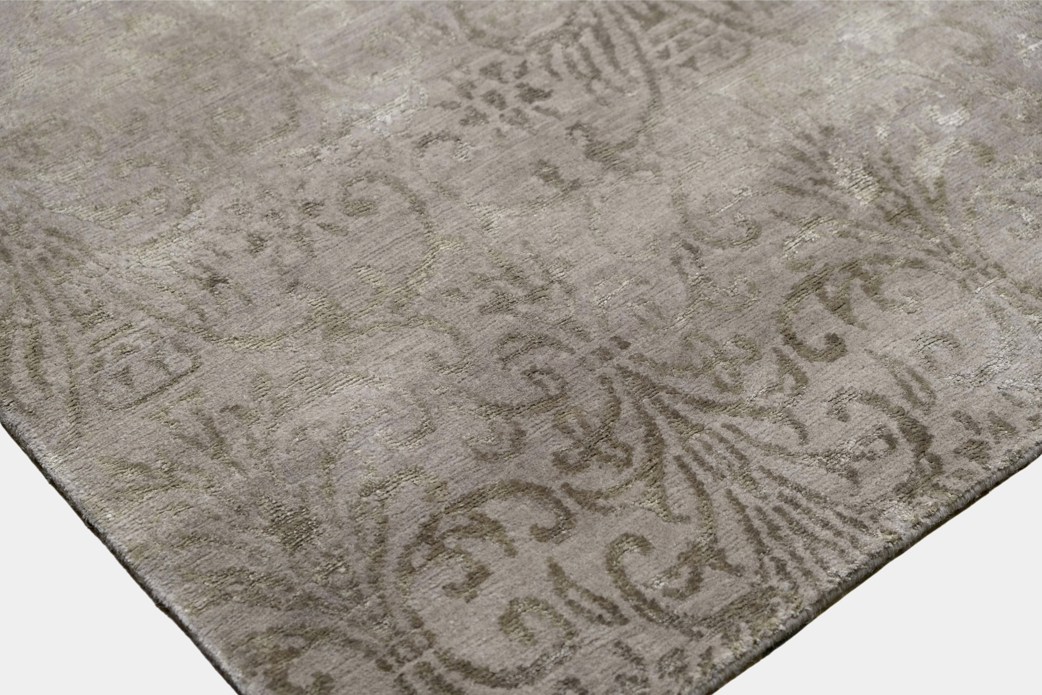 Hand-knotted with a lustrous wool-and-silk pile, featuring light brownish Taupe-mauve background of different shades & an elegant scrolling motif in muted olive-gold create a sophisticated, tonal palette with a refined sheen and a luxuriously soft hand.
