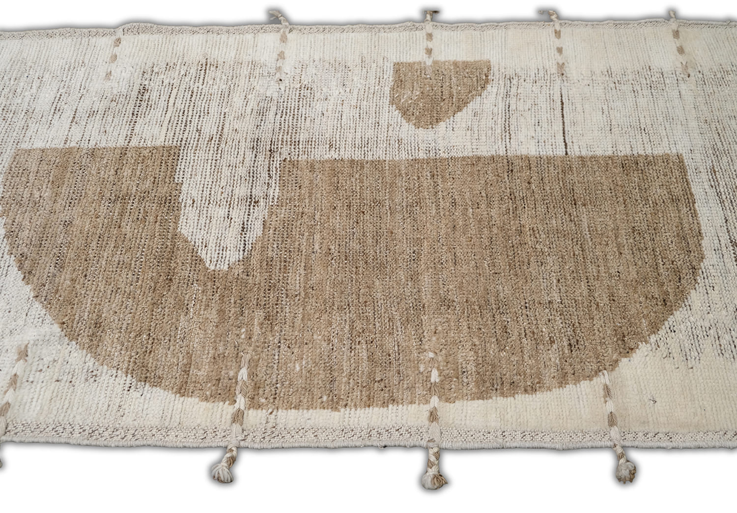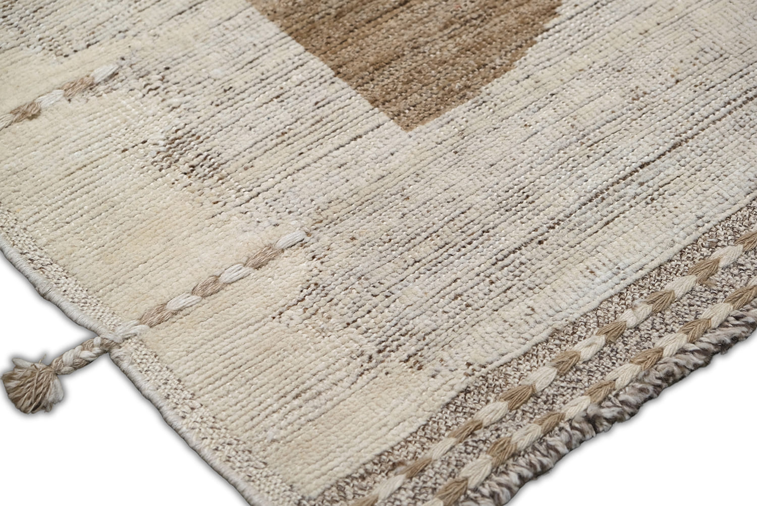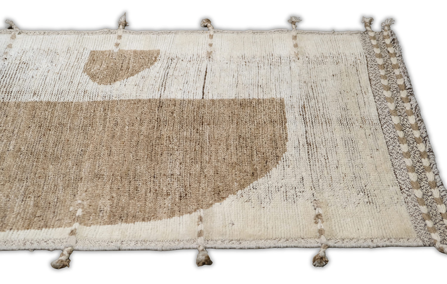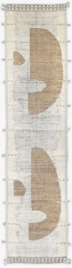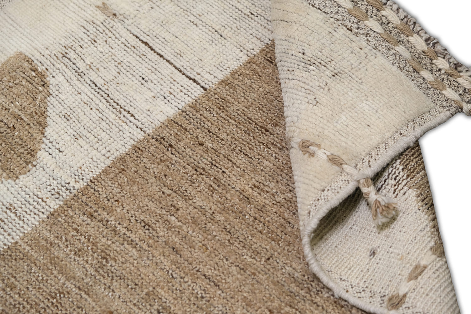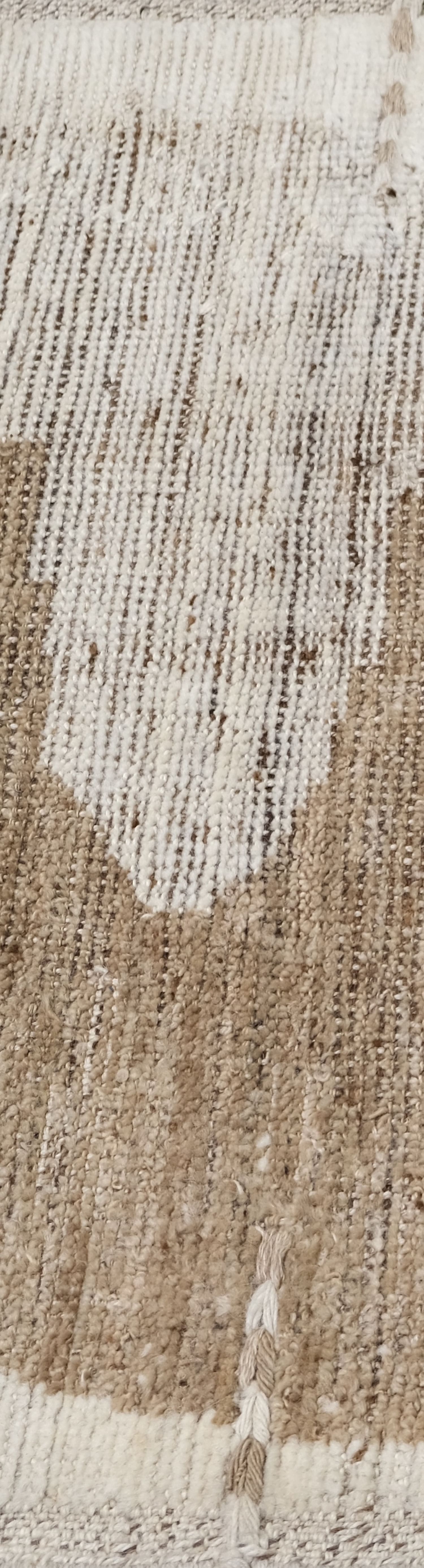 Hand-knotted, crafted with hand-spun wool pile, this soft textured rug features an organic modern geometric design in warm beige and natural ivory,