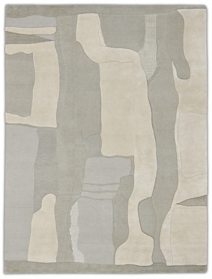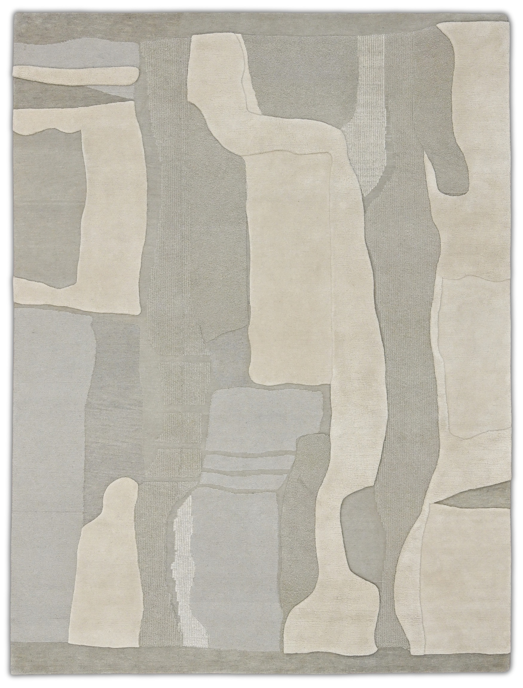This contemporary hand-knotted wool pile rug showcases a sophisticated interplay of texture and tone. Sculptural raised elements in soft ivory contrast beautifully against a ground of warm greige and muted stone gray. Crafted with varying pile heights & weaving techniques, this rug adds texture and architectural depth to both minimalist and transitional interiors.