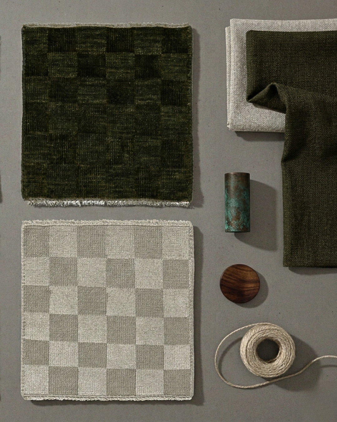 The GRID Collection features hand-knotted rugs crafted from a refined wool and silk blend. Subtle tonal shifts within the structured grid pattern create depth, texture, and quiet movement, offering a modern foundation for refined interiors.